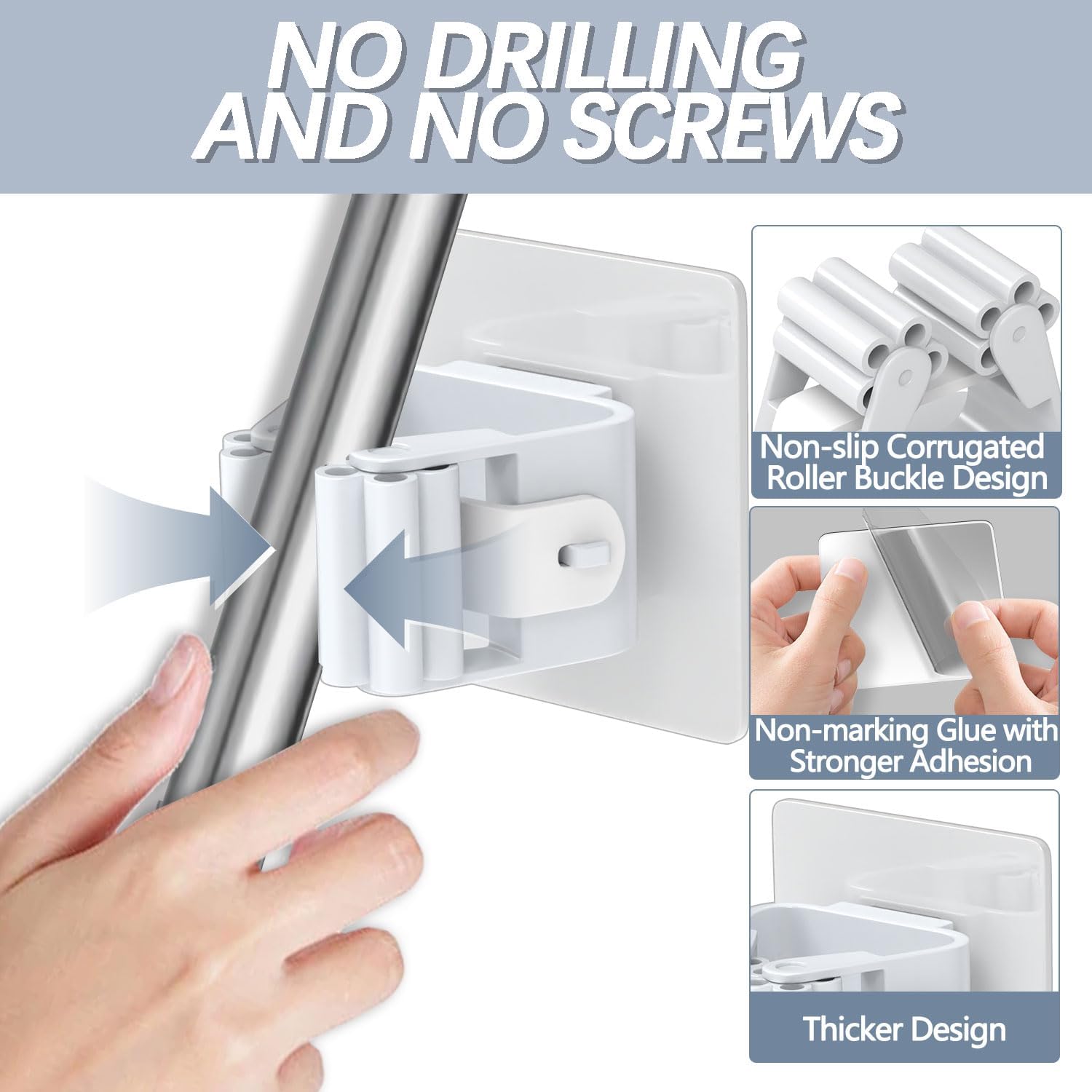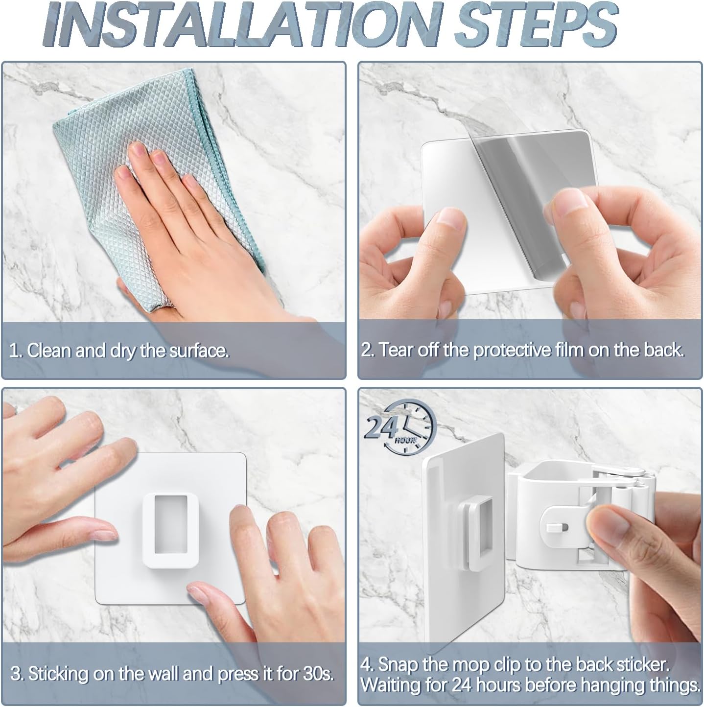 - ✅【24-Pack Heavy Duty Broom Holder】Securely organize 24 brooms, mops, or tools with industrial adhesive backing. Holds up to 10 lbs on tile, wood, or painted walls - no drilling, screws, or damage!
