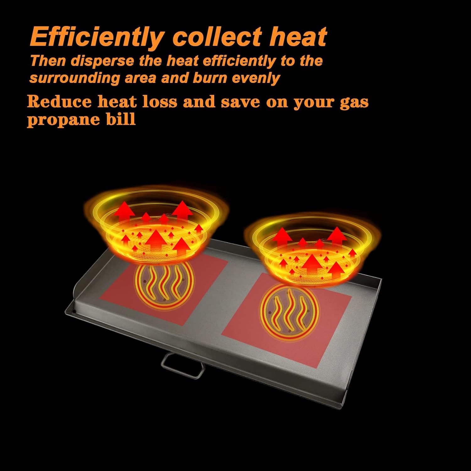 - 【Intimate Designs】- Features a built-in grease drip hole to efficiently manage food residue and waste oil while cooking. The raised edge design helps contain splatters, keeping your cooking area cleaner and making post-grill cleanup easier. The rear includes an integrated perforated heat diffuser plate that evenly distributes heat from the flame for better cooking performance