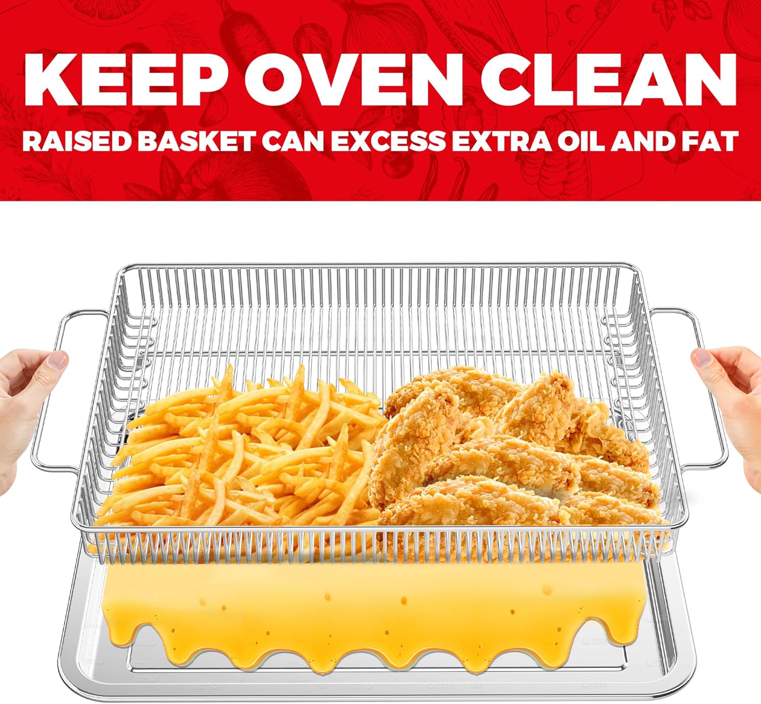 Air Fryer Basket for Oven, Air Fryer Basket and Stainless Steel Baking Tray Pant Oven Air Fryer Pan Rack for Cooking Baking Dishwasher and Broiling (13.9in * 8.8in &12.9 in * 9.7 in)