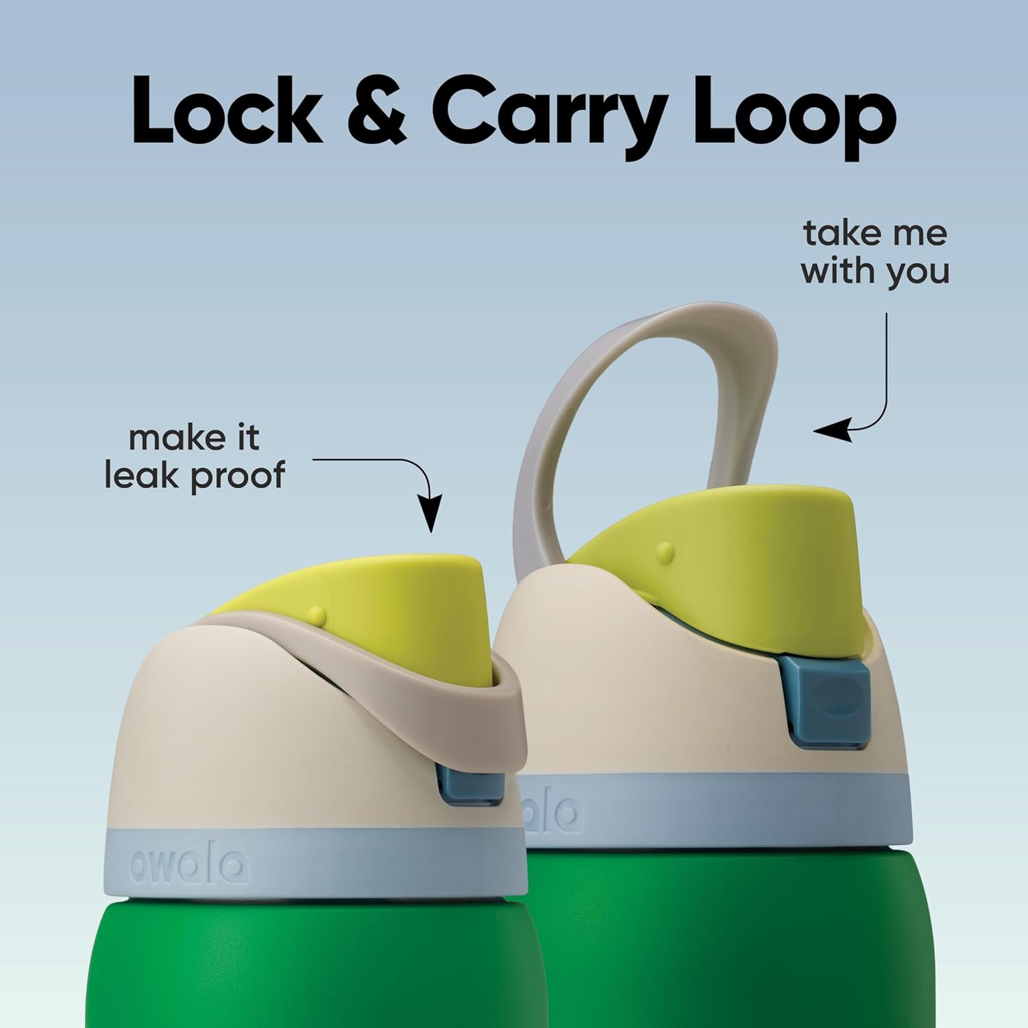 - 32-ounce insulated stainless-steel water bottle with a FreeSip spout and push-button lid with lock