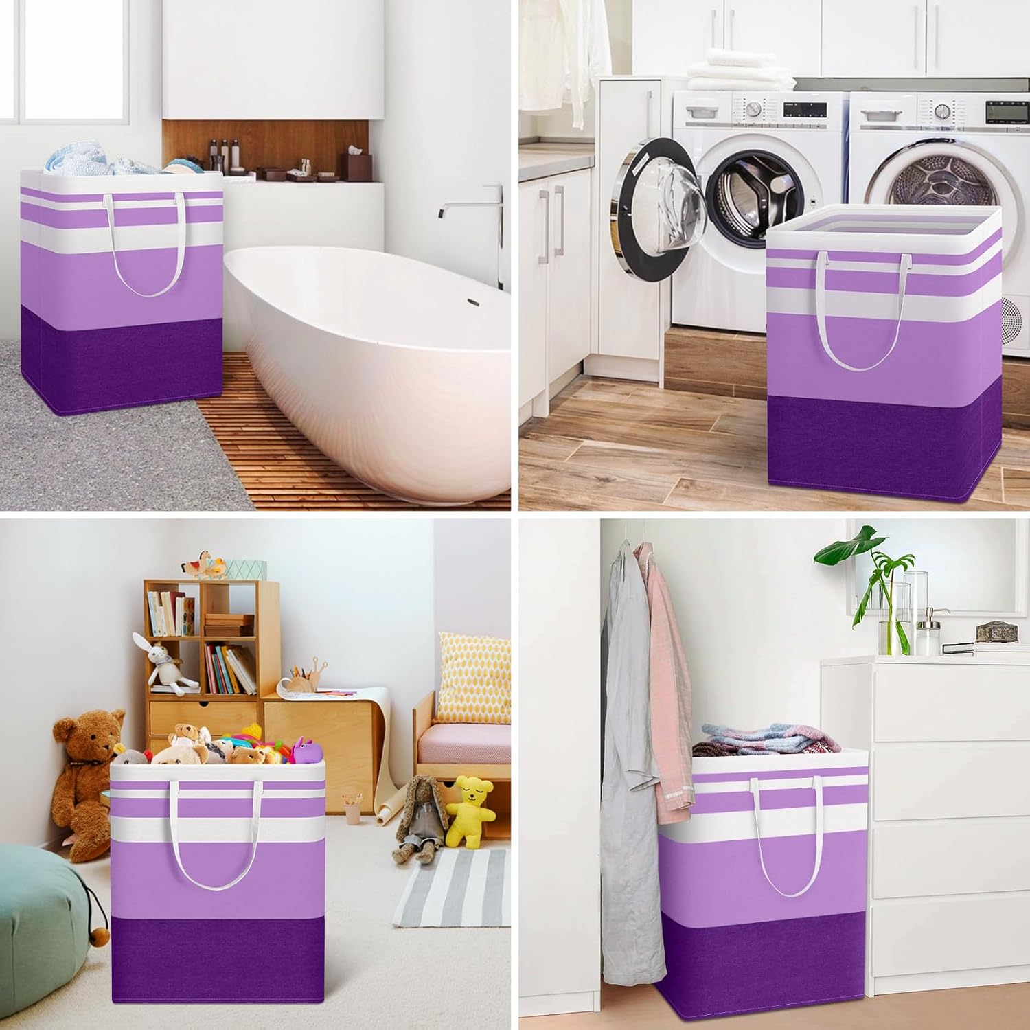 HomeHacks 2 Pack Large Laundry Baskets, Waterproof, Freestanding Laundry Hampers, Collapsible Clothes Hamper with Reinforced Handles in Laundry, College Dorm, Bathroom, Bedroom (Purple, 125Lx2)