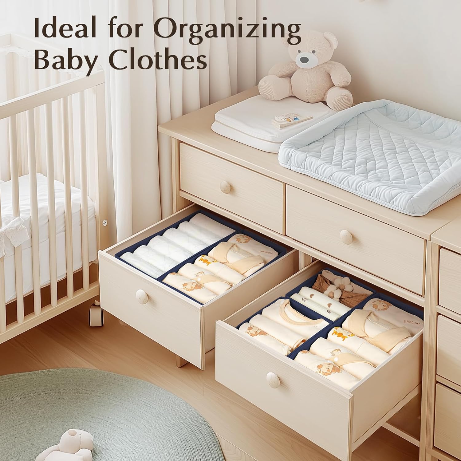 DIMJ Drawer Organizers Clothes, Set of 8 Dresser Organizer Bins, Fabric Closet Organizers and Storage, Shallow Drawer Dividers for Nursery, Clothing, Baby Clothes, Socks, Underwears, Tie (Navy Blue)