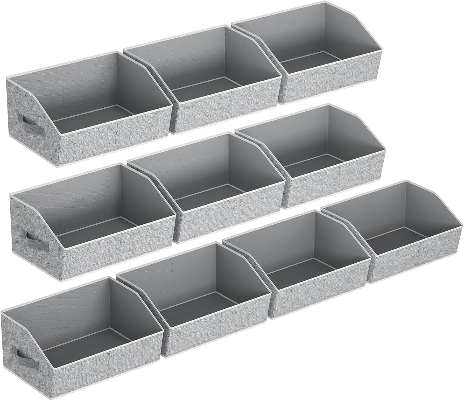Closet Baskets for Shelves Trapezoid - Decorative Storage Baskets with Handle, Closet Bins for Organization, Shelf Storage Bins for Clothes, Books, Home, Office, 10 Pack, Light Gray