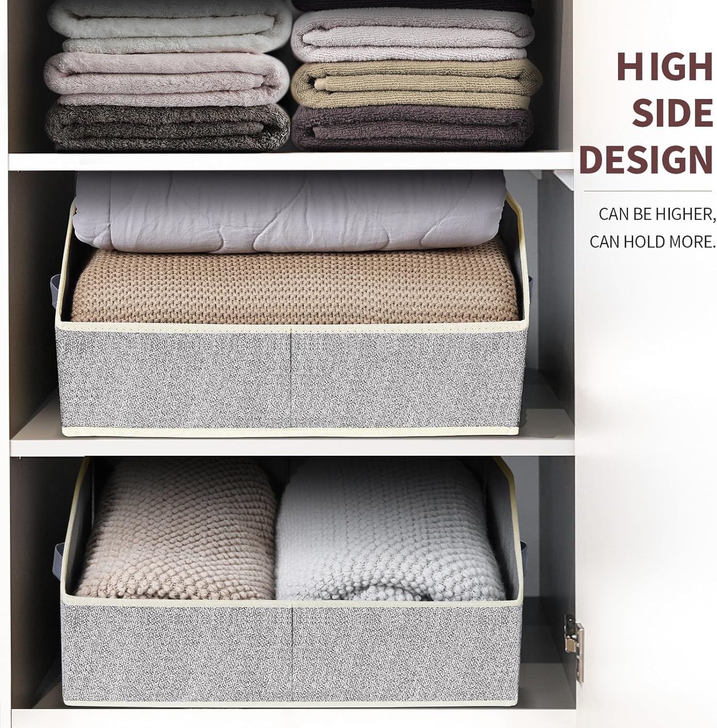 • [Sturdy Baskets] Our organizing bins are supported by thick cardboard for sidewalls and bottom. The sturdy sturcture makes clothing storage bins resist to deform. Made of delicate stitches, Homsorout linen closet organizer are also sturdy and not easy to tear apart