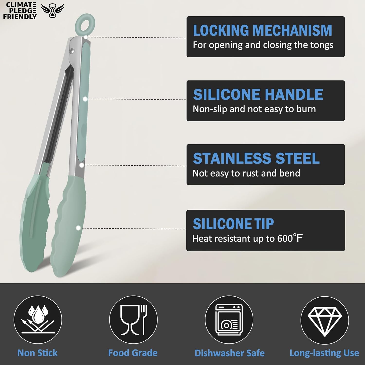 • Premium Materials: EEKEDO kitchen tongs are constructed with food-grade stainless steel and silicone. Carbon free.Thickened stainless steel makes it stronger and more durable.It is convenient and safe to your cooking.
