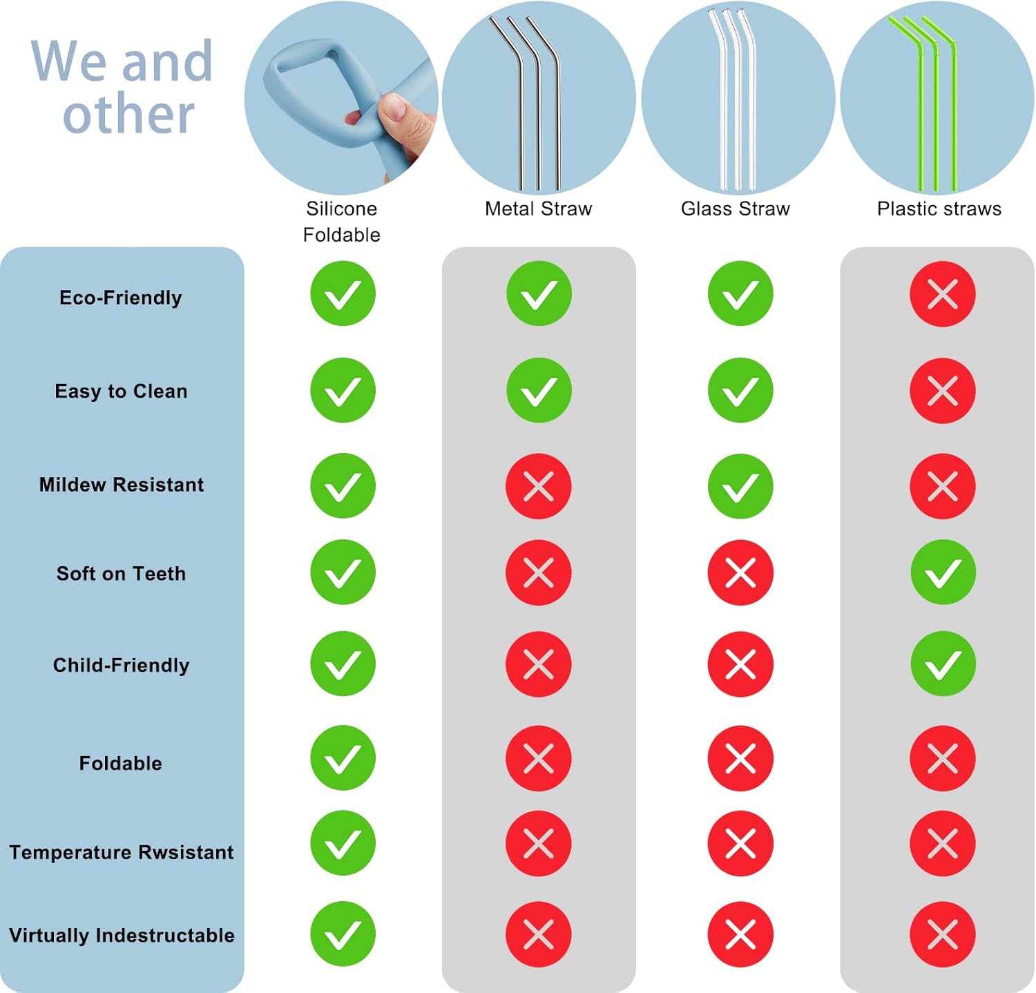 - Reusable Silicone Straws: Made from high-quality silicone, These straws are reusable and durable, It is without any odors or tastes. They're easy to clean and hand washable and dishwasher safe.