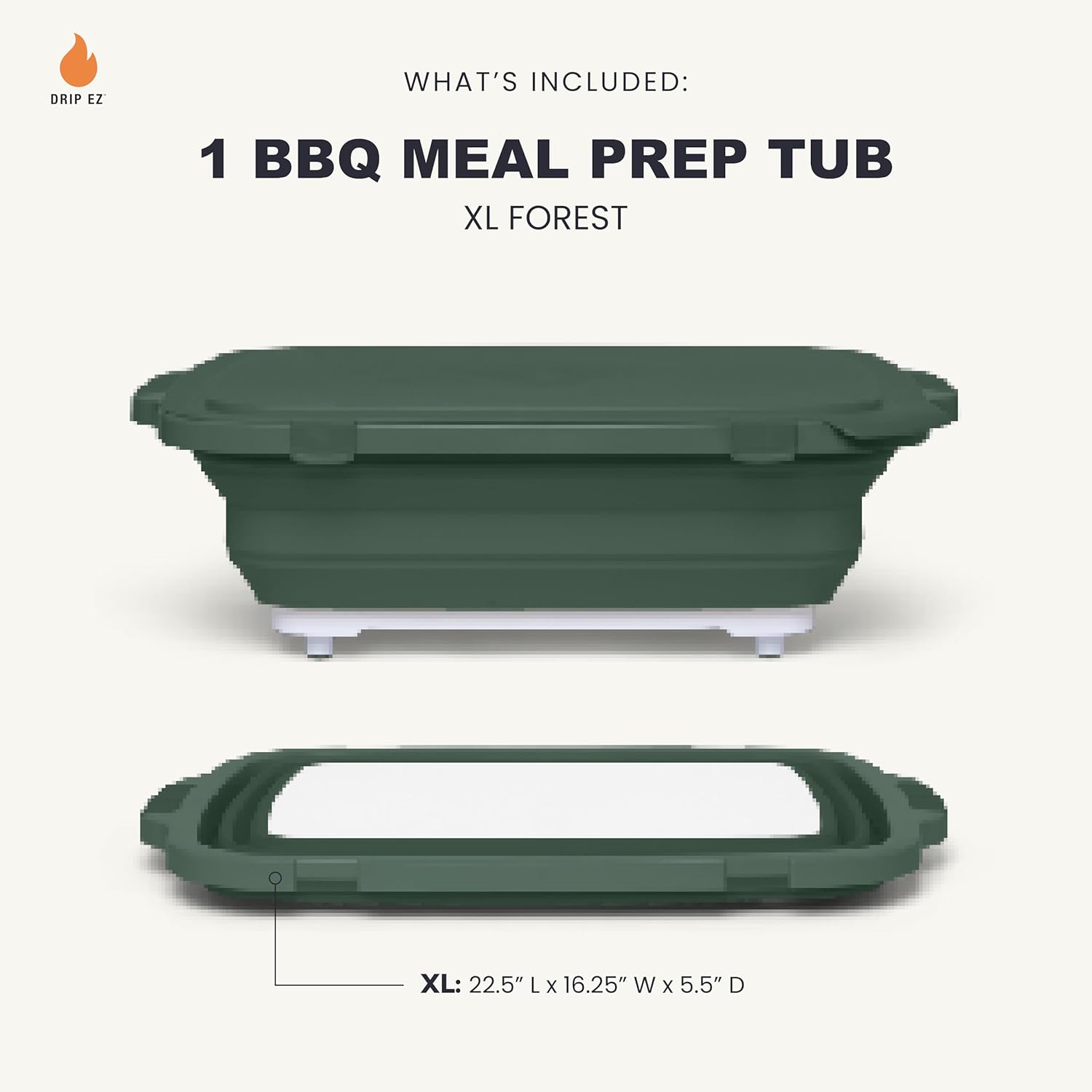 Drip EZ Collapsible BBQ Prep Tub - for Meal Prep Marinating Food Storage - Includes Cutting Board & Locking Lid - (1) XL - Green