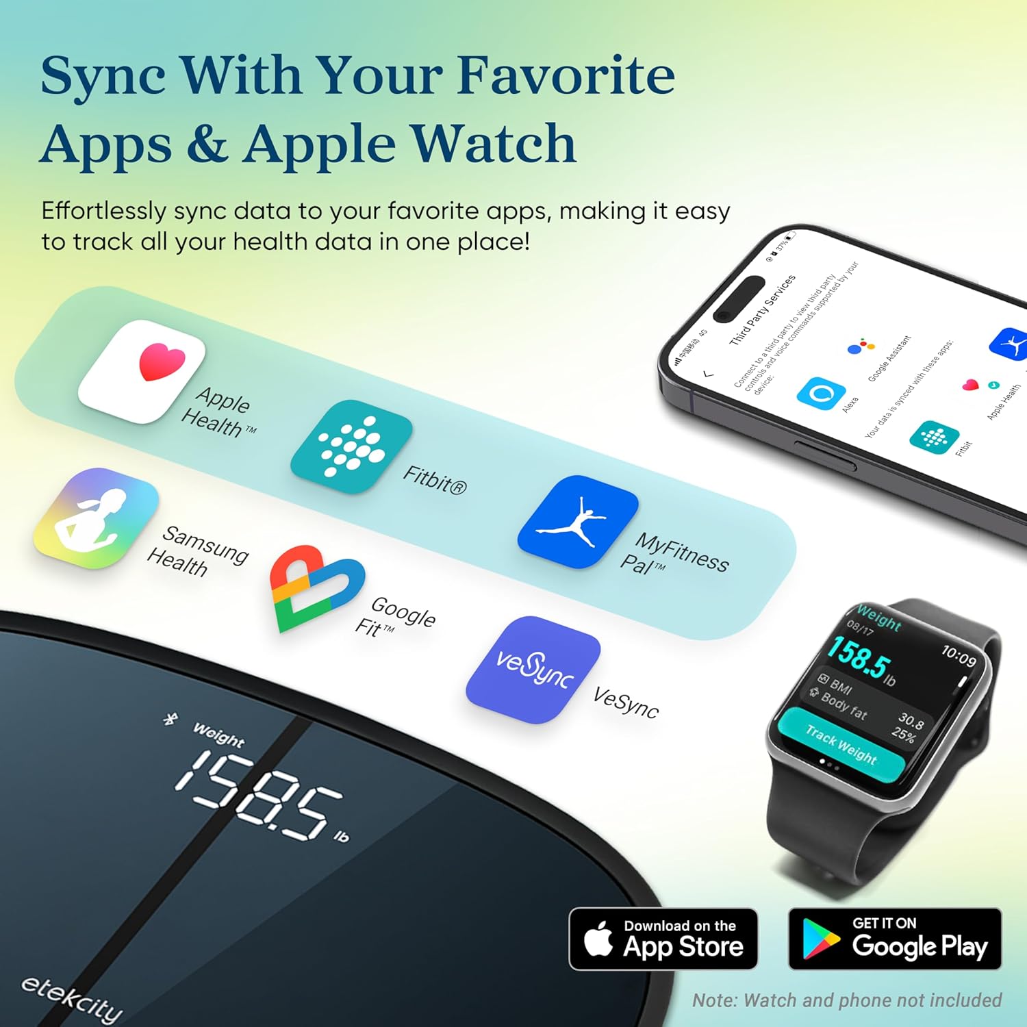 • 𝗕𝗿𝗶𝗴𝗵𝘁𝗲𝗻 𝗬𝗼𝘂𝗿 𝗗𝗮𝘆: Say goodbye to the ordinary. The Etekcity Smart Fitness Scale comes in stunning colors that will brighten your daily routine and let your wellness journey shine