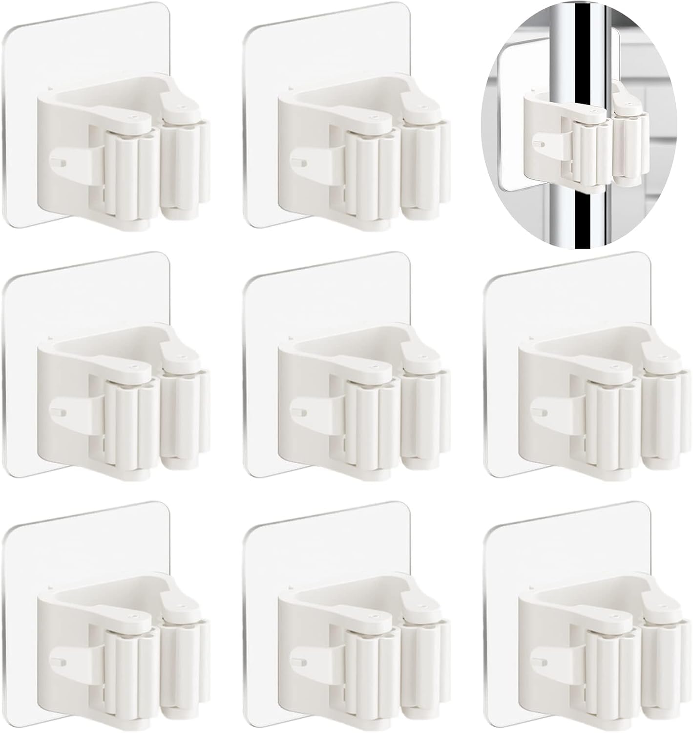 - ✅【8-Pack Heavy Duty Broom Holder】Securely organize 8 brooms, mops, or tools with industrial adhesive backing. Holds up to 10 lbs on tile, wood, or painted walls - no drilling, screws, or damage!