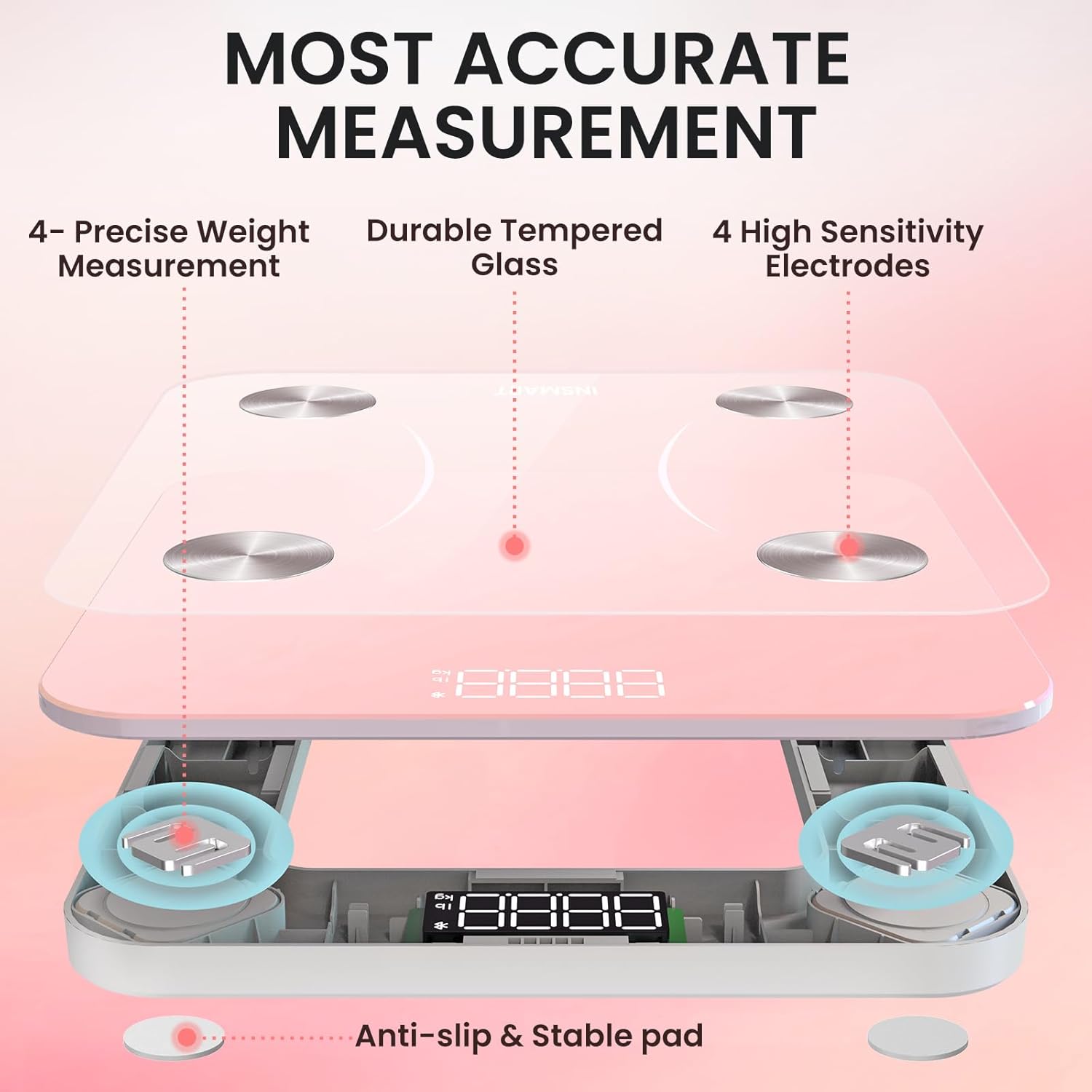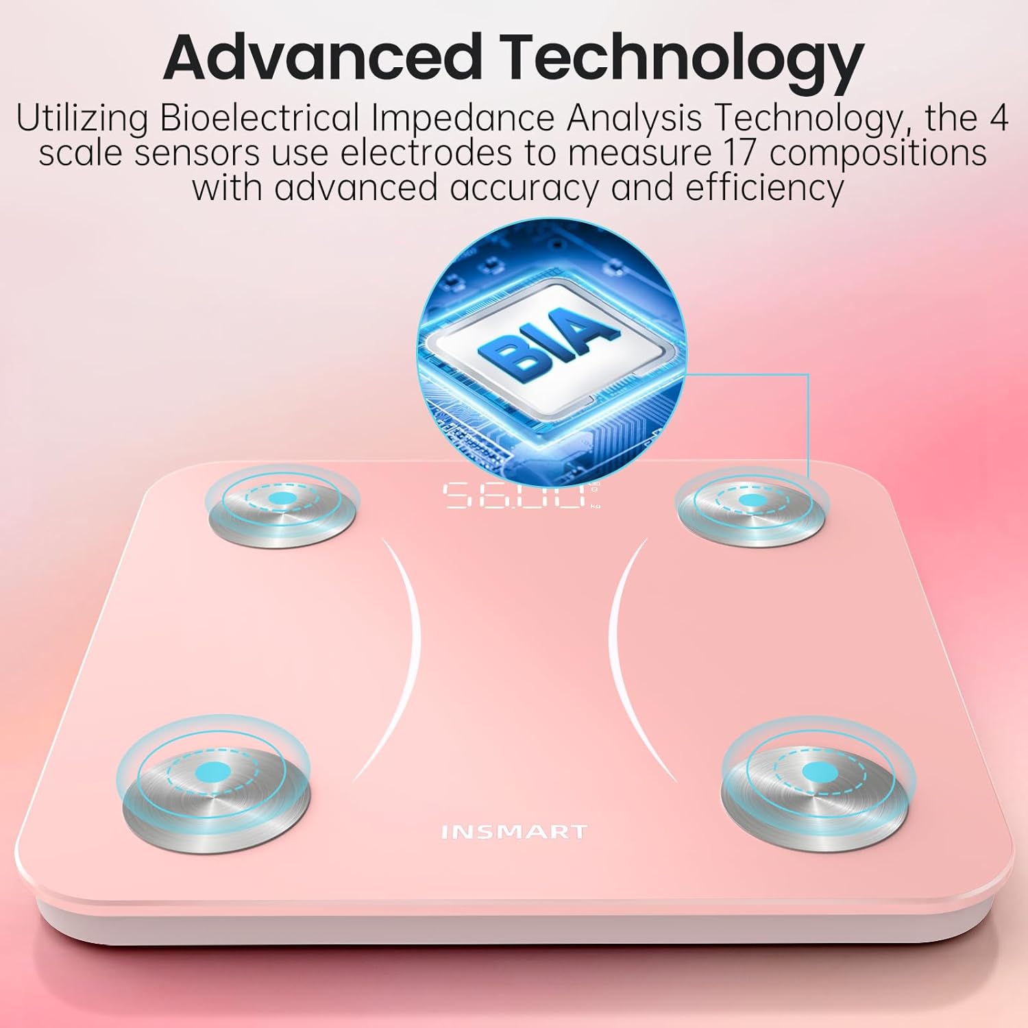 INSMART Smart Scale for Body Weight, Digital Bathroom Scale with BMI, Muscle Mass, Bluetooth Body Fat Scale,17 Body Composition Analyzer with Smart APP Sync Weight Scale, 400 lbs - Pink