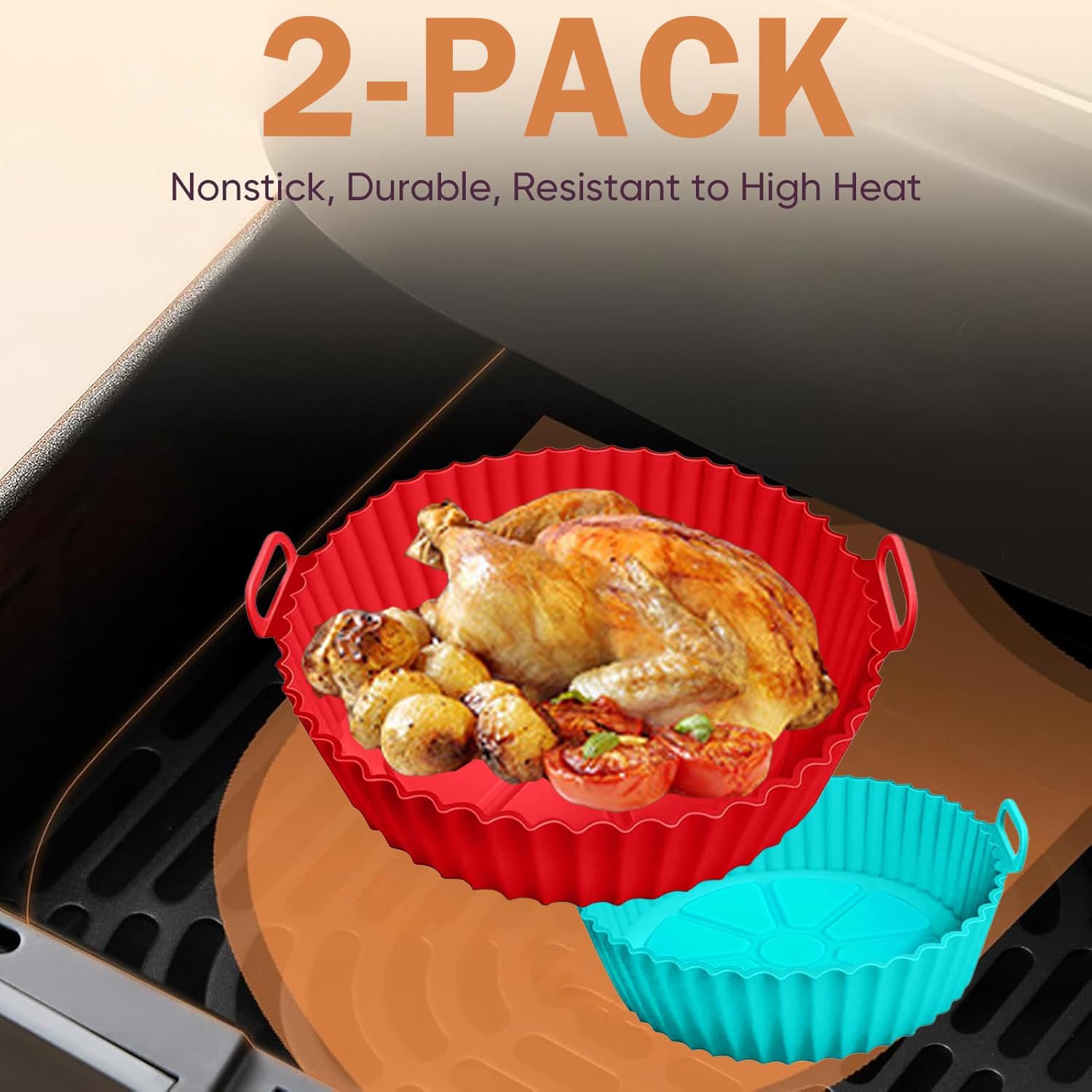 2 Pack,Air Fryer Silicone Liners Compatible With COSORl Air Fryer Or 5 QT Or Bigger (Red+Blue)