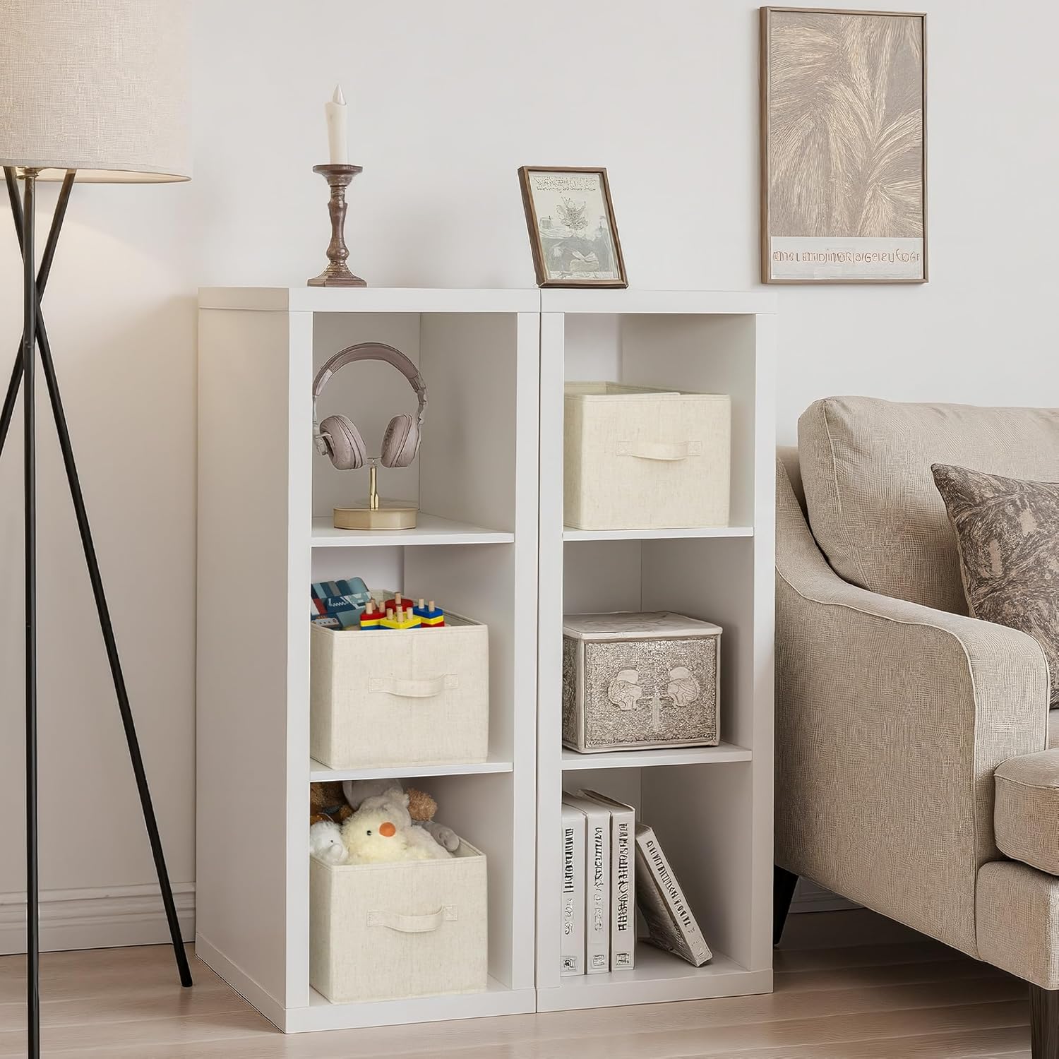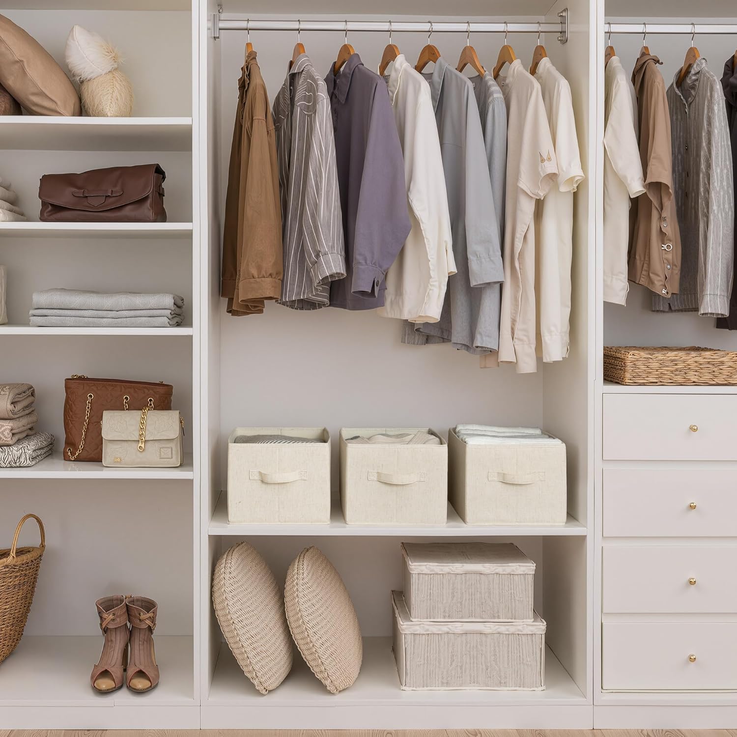 StorageWorks Storage Baskets for Shelves, Foldable Fabric Closet Storage Bins with Handles, Fabric Storage Bins Clothes Organizer, Beige(Cotton-linen), 3-Pack, Large