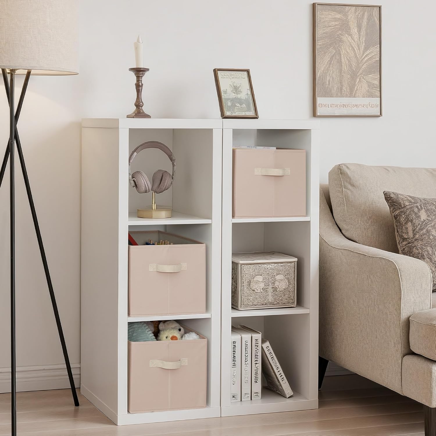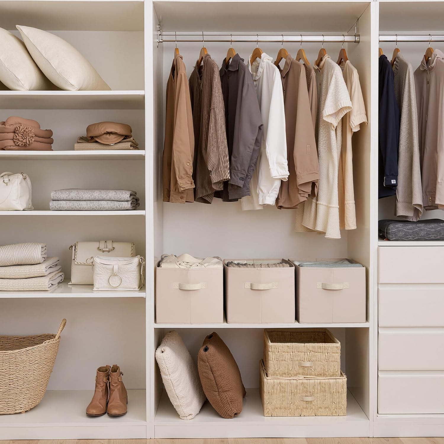 • Leather Handles: Soft leather handles provide a secure, comfortable grip, making it easy to lift or slide bins from shelves or closets.