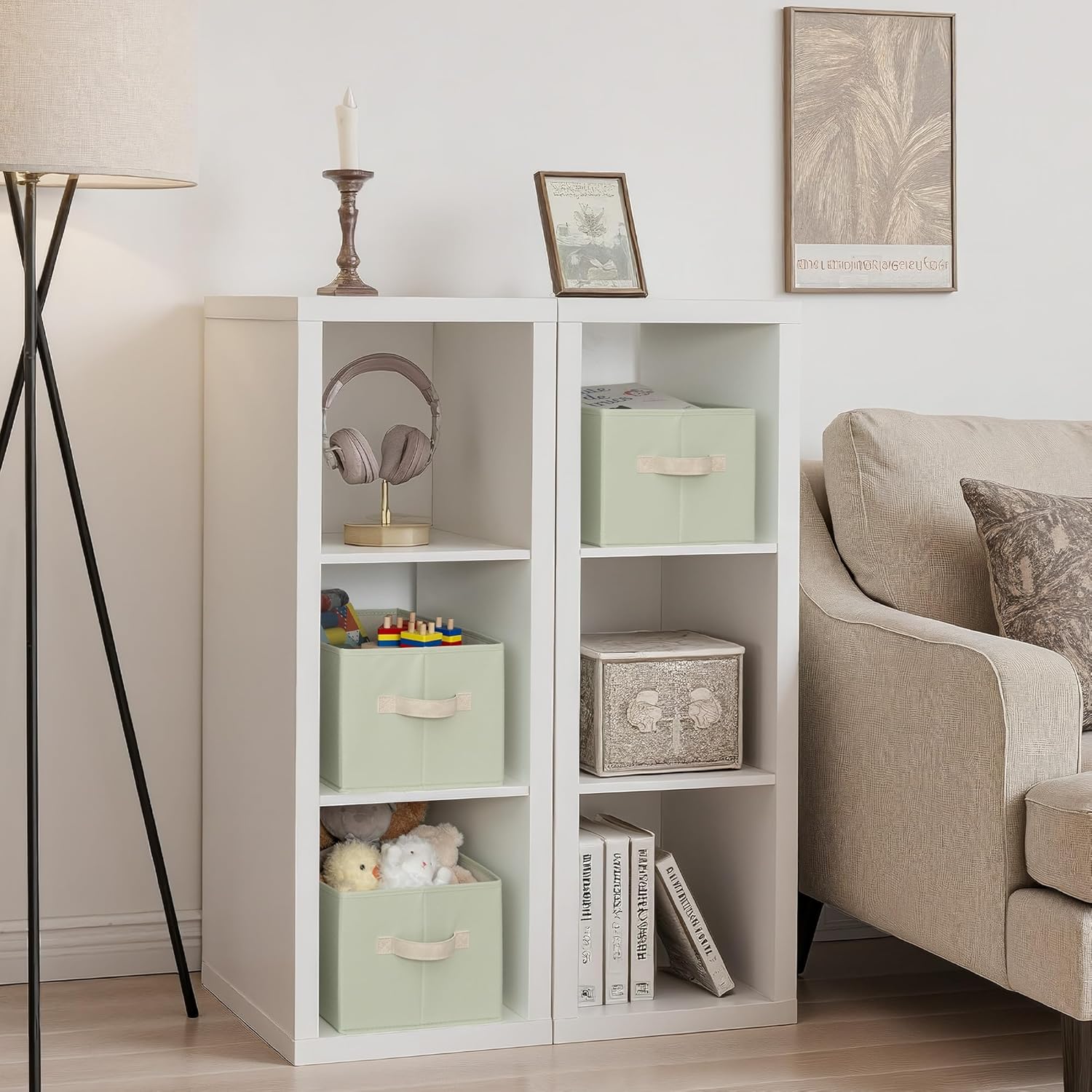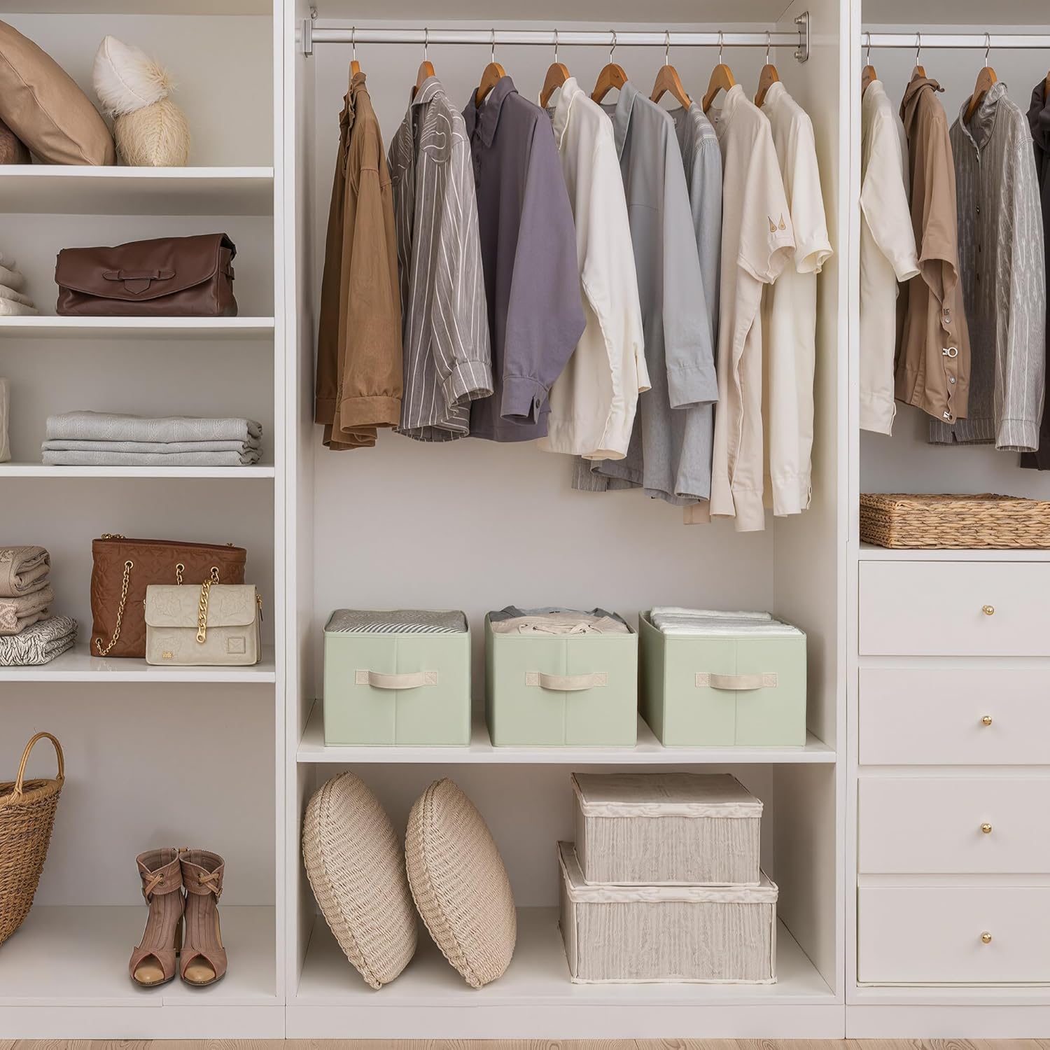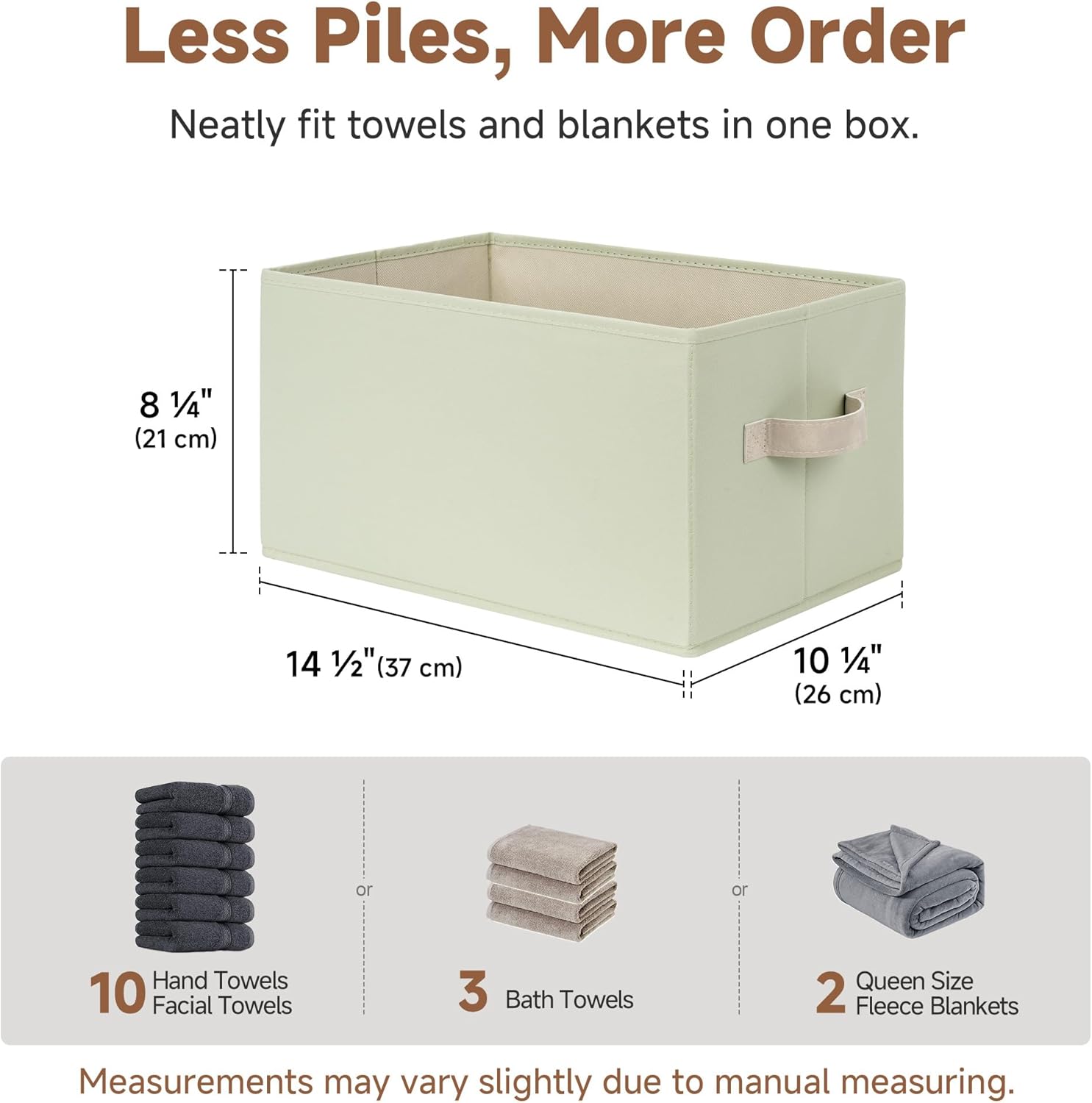- Leather Handles: Soft leather handles provide a secure, comfortable grip, making it easy to lift or slide bins from shelves or closets.