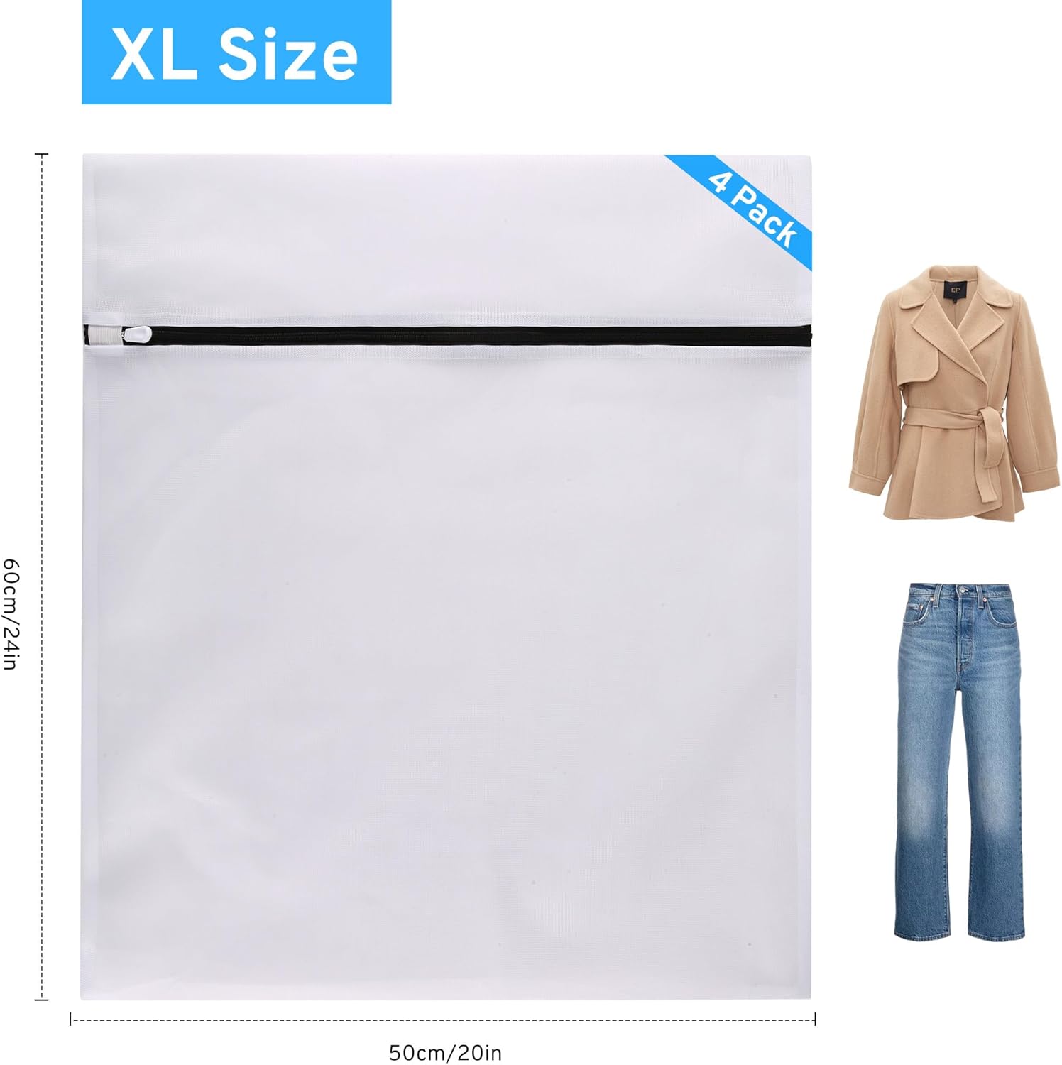 4 Pcs Mesh Laundry Bags Set for Delicates with AUTO-Lock Zipper, Lingerie Bags for Washing Delicates, Laundry Bags Mesh Wash Bags, Delicates Laundry Bag for Jeans,Blouse,Stocking,Bra(XL, 24" x 20")