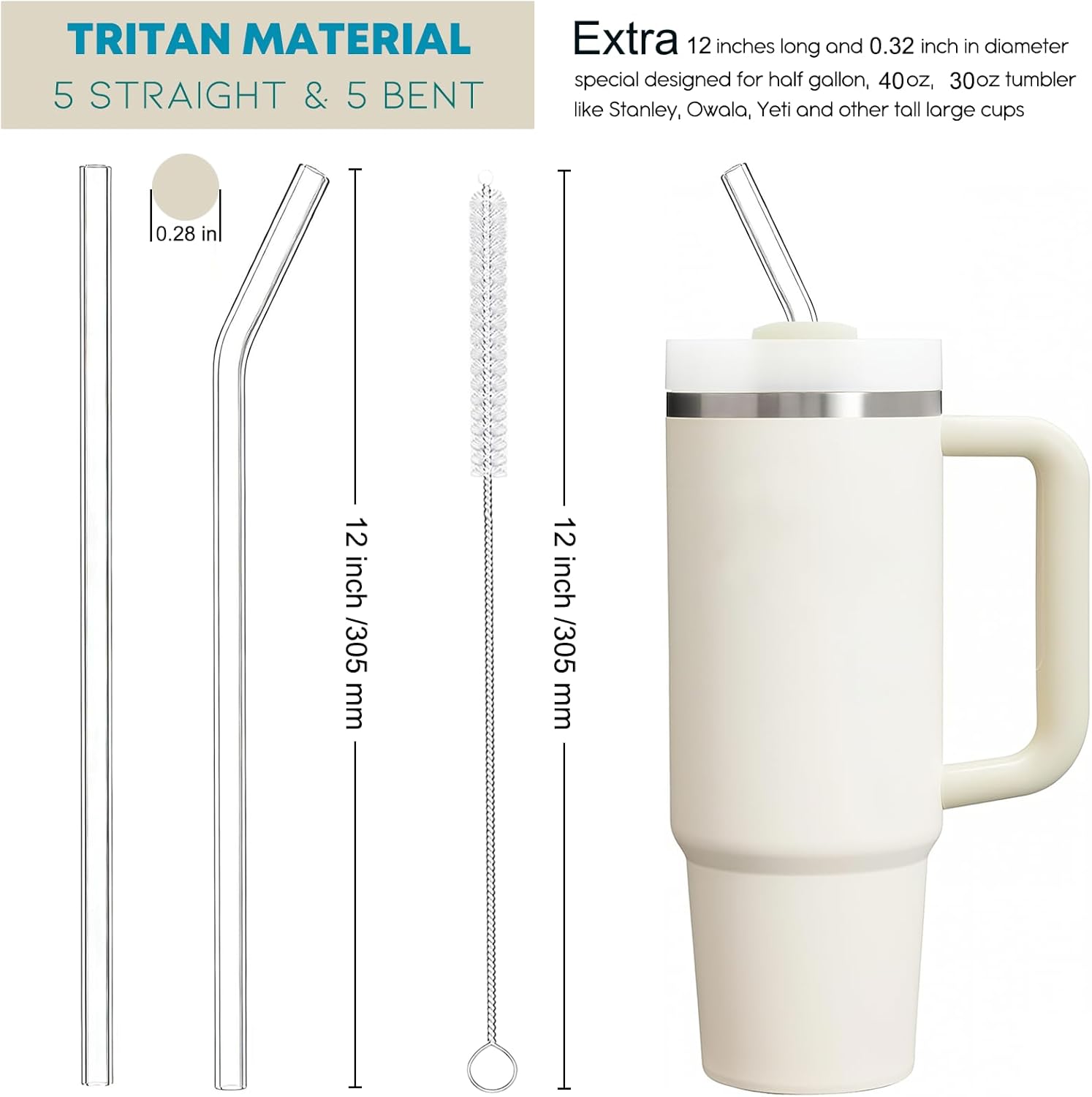 ALINK 10 Pcs Replacement Straws for Stanley 40 oz 30 oz Tumbler, 12 inch Long Reusable Tritan Plastic Clear Tumbler Straws for Stanley Cup, Owala 40 oz, Yeti 42 oz Accessories with Brush