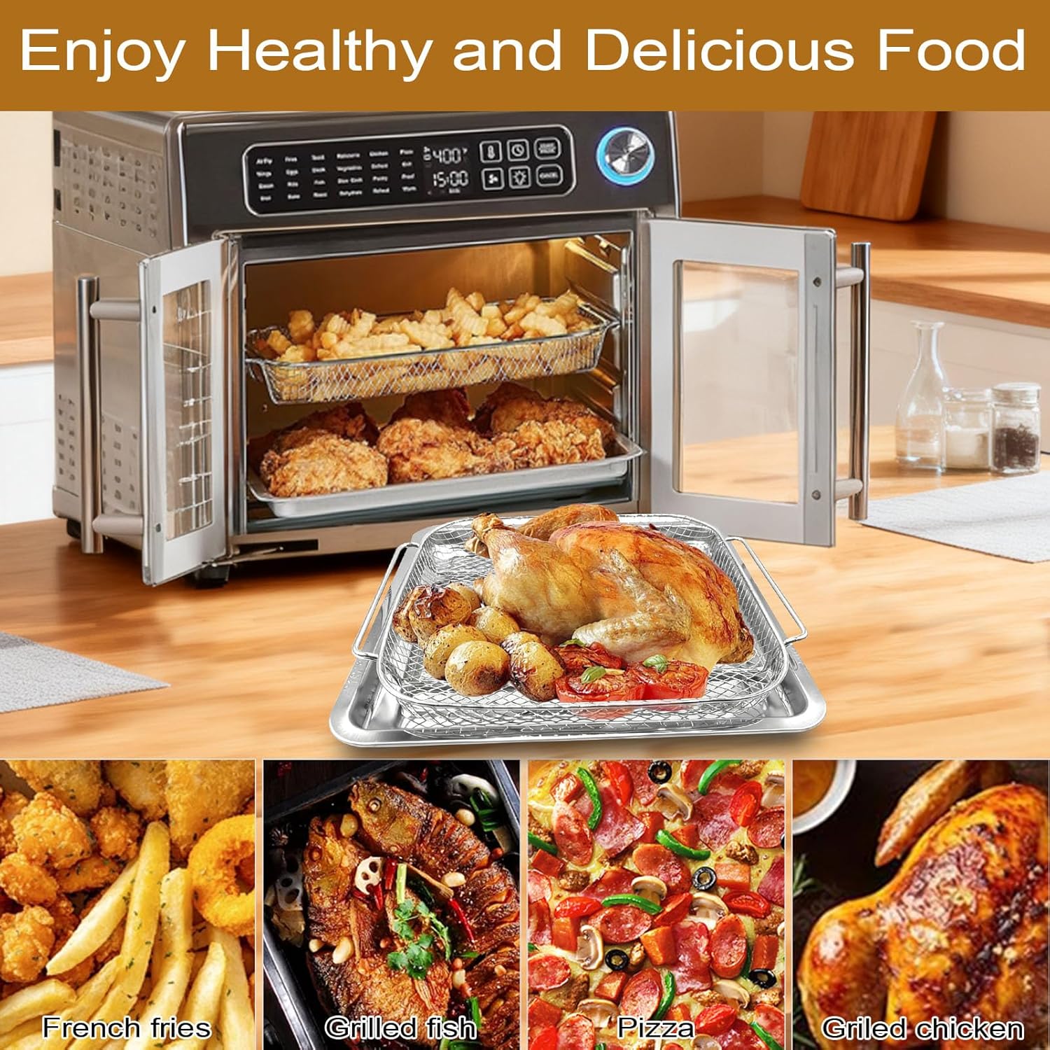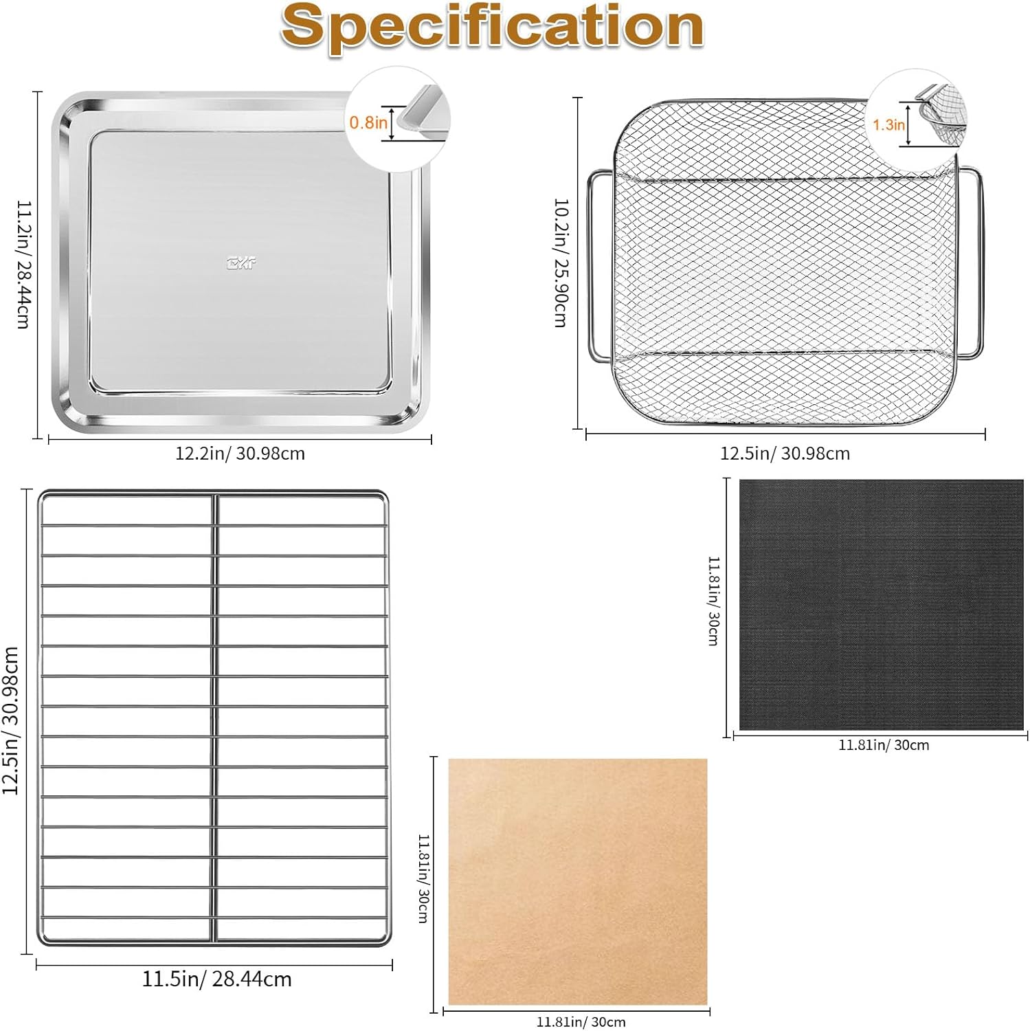 - Multifunctional Cooking & Enhanced Oven Utility: Maximize your air fryer oven! The grill pan is perfect for cakes and cookies; the grill rack is designed for crispy fried chicken and fries; the roasting rack is ideal for grilling meats; the baking mat works great for fish and vegetables; and the baking paper prevents sticking while keeping your oven clean. One accessory set, endless culinary possibilities