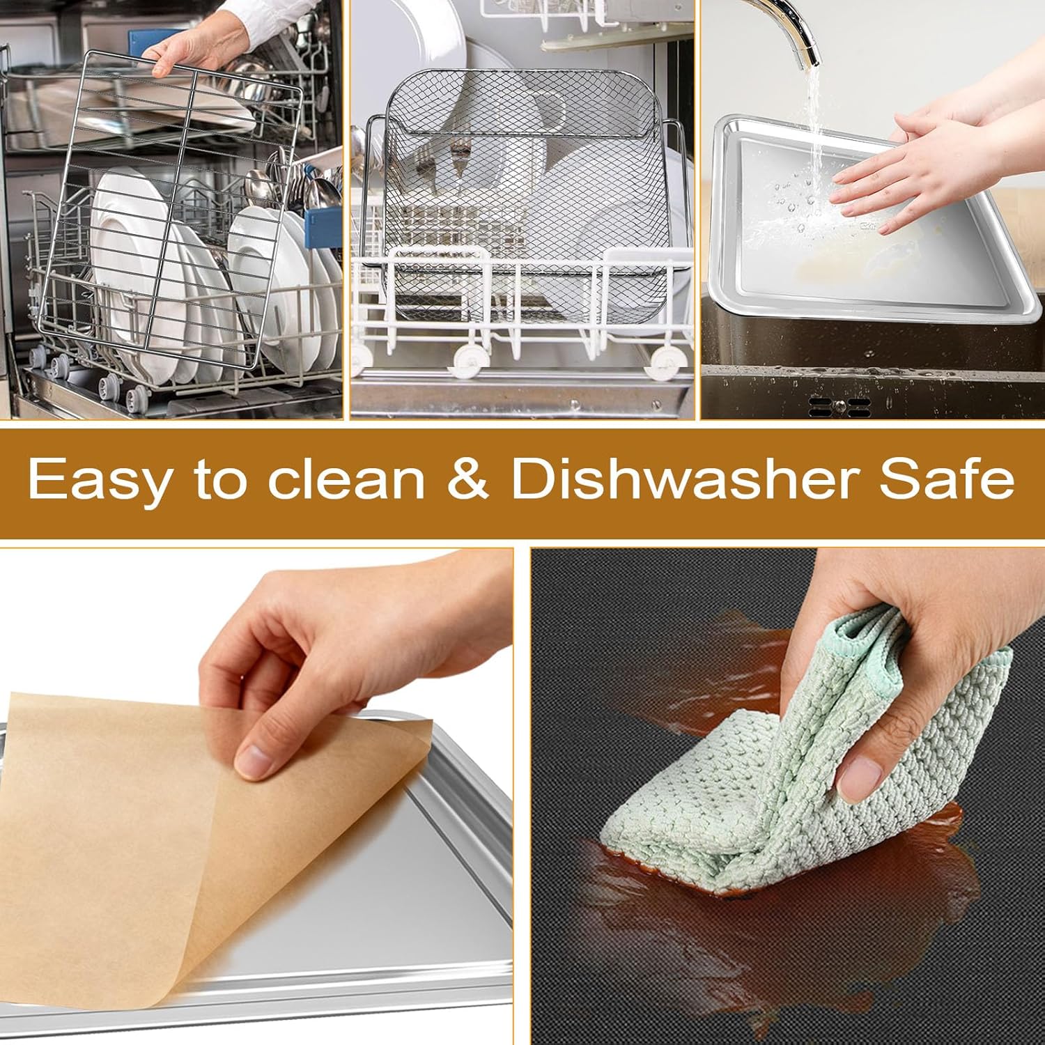 - Easy Cleaning & Non-Stick Surface: The grill pan, grill rack, and baking mat feature a premium non-stick coating that prevents food from sticking, making cleanup quick and effortless. Simply wipe down or rinse with water after use. All accessories are dishwasher-safe for convenient cleaning. The baking paper is disposable, making cleanup easier than ever
