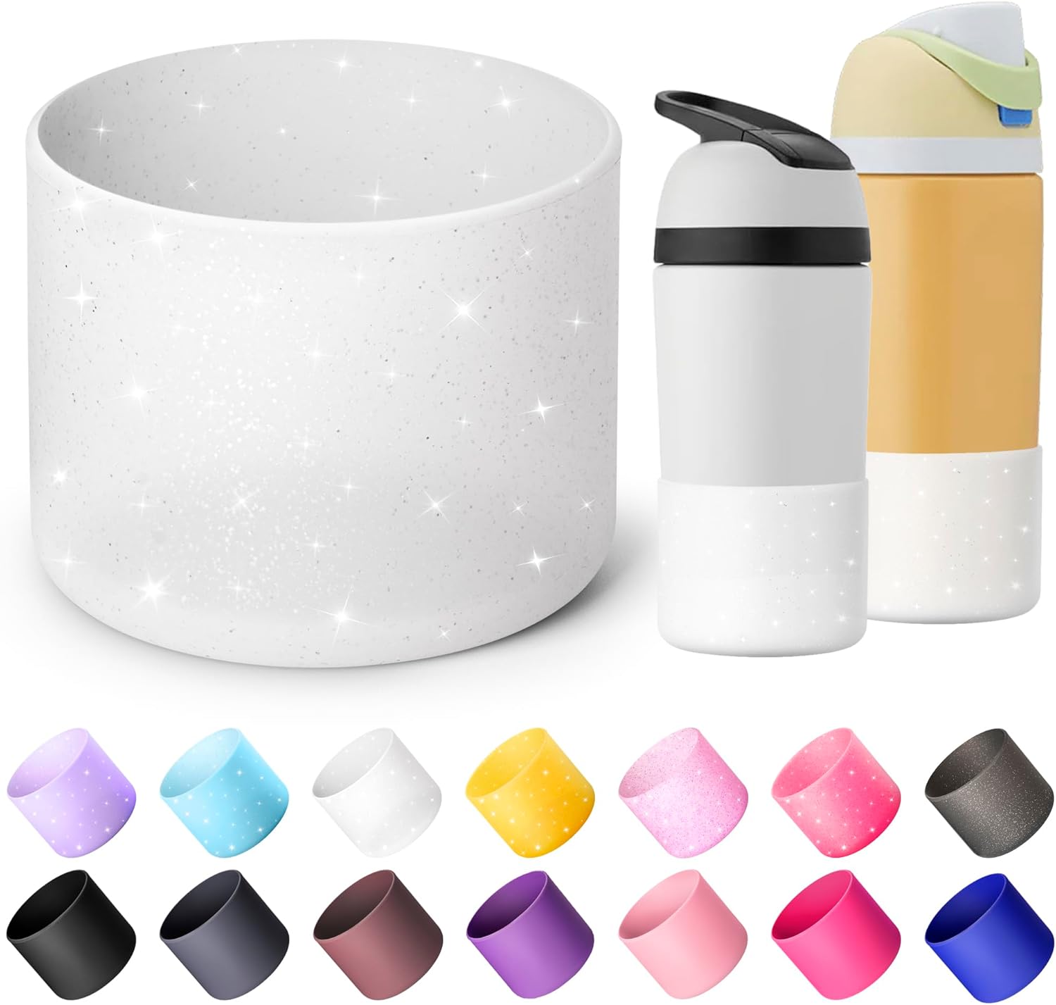 Silicone Boot for Owala 14/16 oz Water Bottle, Anti-Slip Protective Sleeve for Owala 12 oz Kids Tumbler, Boot Bottom Base fit Flip 14 oz Insulated Stainless-Steel Water Bottle (Glitter White)