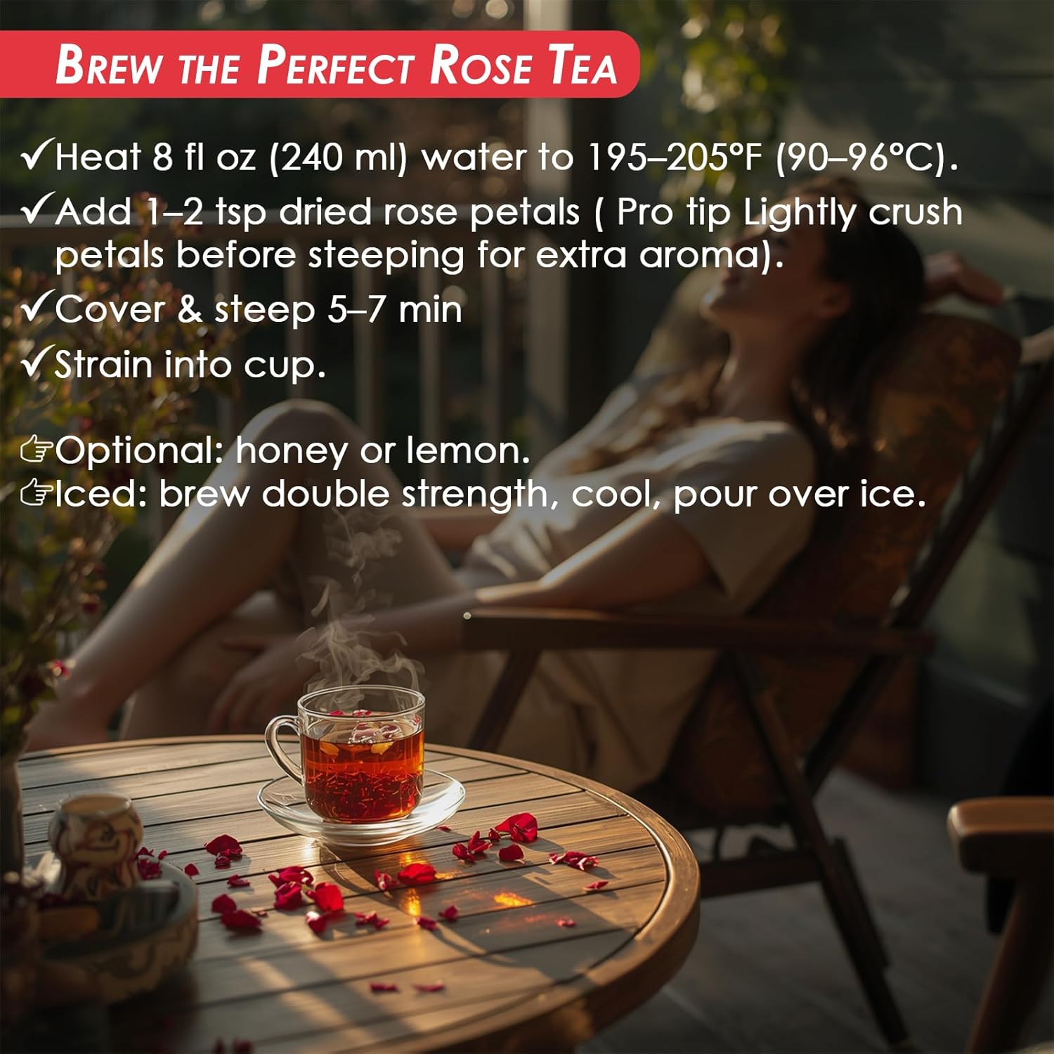 - 🍵 Relax & Unwind with Floral Bliss Enjoy calming floral bliss with our dried rose petals tea. These dried rose petals edible provide an aromatic infusion naturally rich in antioxidants and Vitamin C—perfect for relaxation, rejuvenation, and serene tea rituals.