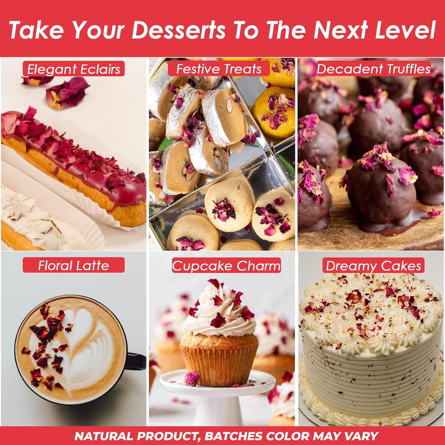 - 🍰 Gourmet Elegance for Every Dessert Add sophistication to your culinary creations with our edible roses for cake decorating. Ideal for desserts, pastries, cocktails, syrups, and salads, these rose petals edible deliver unmatched flavor and beauty for chefs and home bakers alike